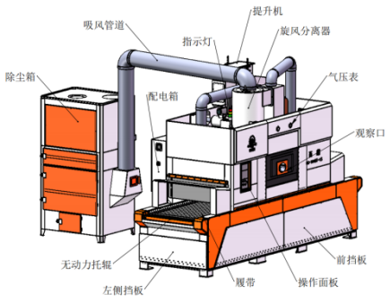 ⑥:配有閉環(huán)磨料循環(huán)系統(tǒng)(由濾網(wǎng)+磨料螺旋輸送+提升機+砂槽等組成),磨料(大小/種類)選擇范圍廣,環(huán)保而高效。